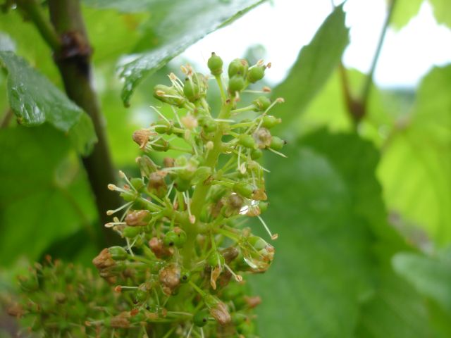 Everyone feels sure the sun must come back soon, but meanwhile the vines are still dripping and there’s a growing concern ( sorry for the pun) that the tiny vine flowers which are coming out right now, won’t develop properly. If that happens the number of grapes will be reduced and we’ll end up with a small harvest.
